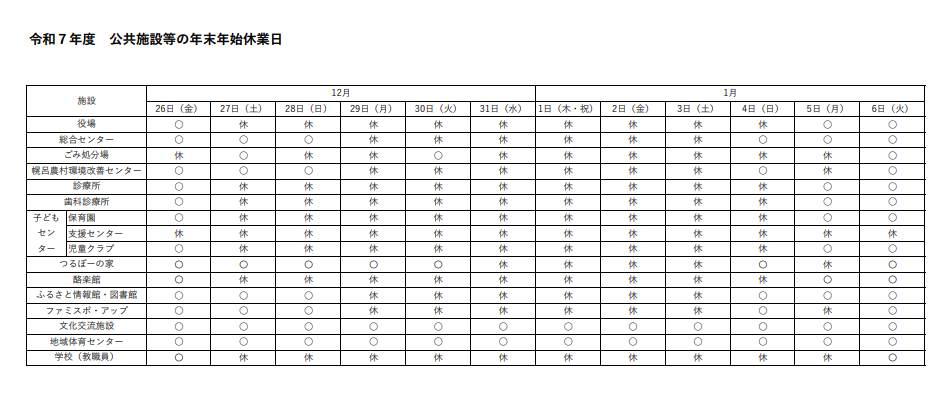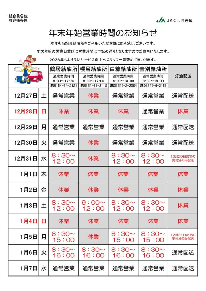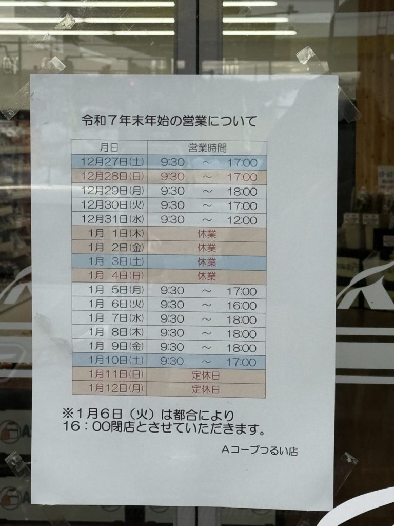 年始:1/4(日)〜 ※毎週月曜日が休みのため、1/5(月)は休み
