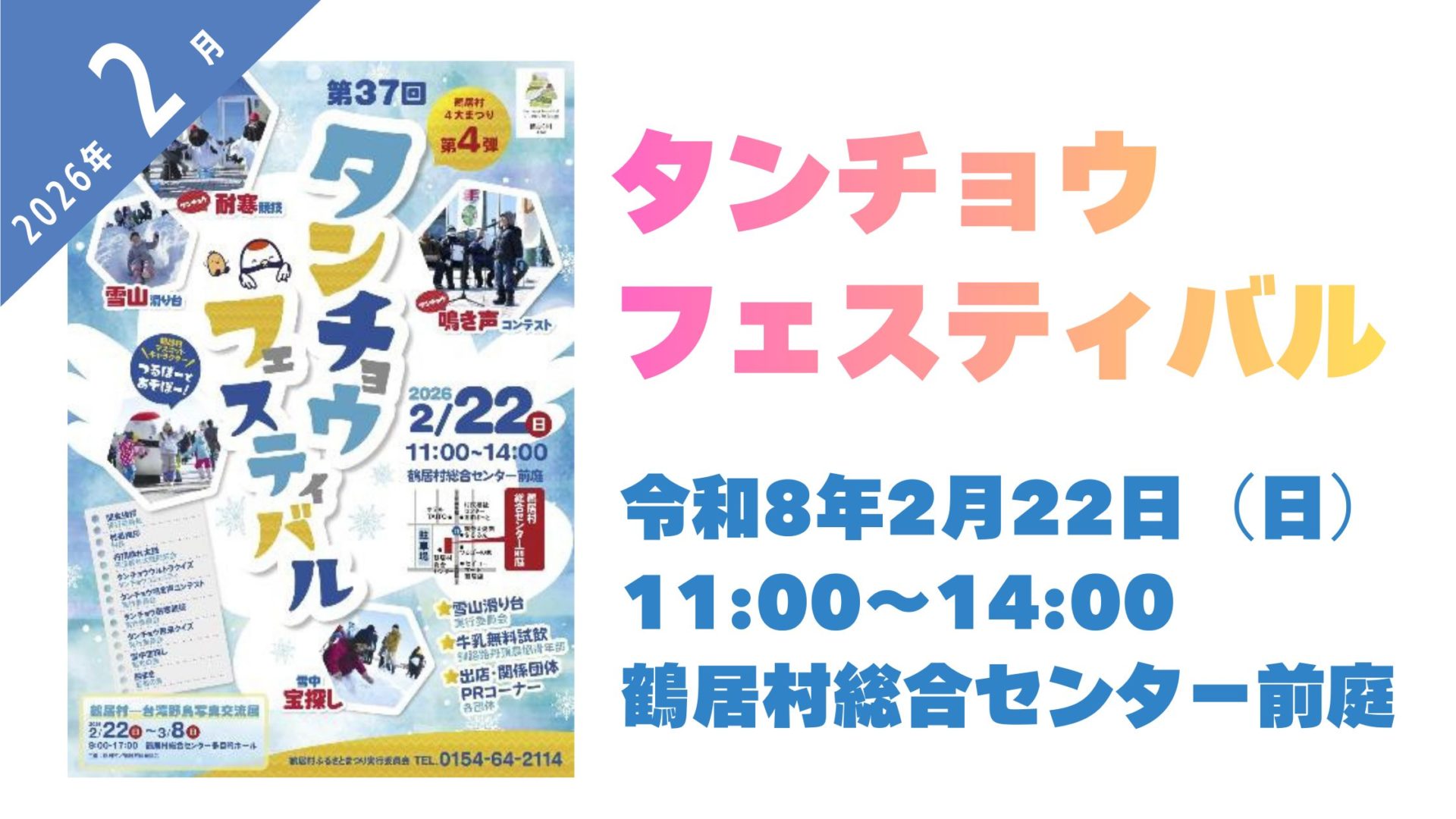 今年は鶴居村総合センター前庭にて、大人も子どもも全力で楽しめる「タンチョウフェスティバル」を開催します!✨