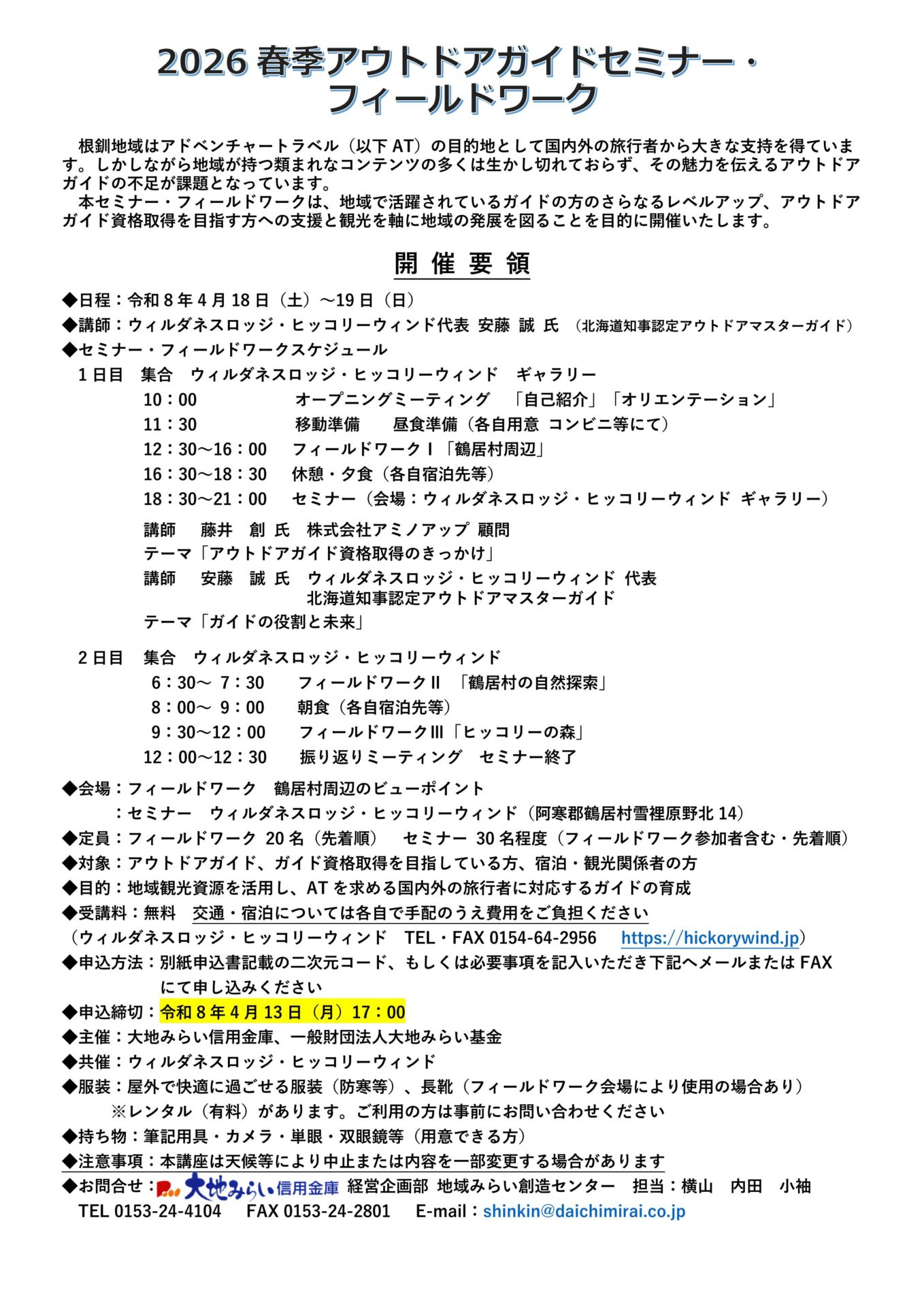 今回のセミナーでは、 60歳を迎えてなぜガイドを目指そうと思ったのか? どのような工夫をして勉強をしたのか? ガイド資格を取得してからの現在・ 目指す未来などについてお話いただきます。 ガイドとしての生き方に興味がある方はもちろん、 藤井さんのしか語ることができない安藤誠とのこれまでの人生に興 味がある方も、この機会にぜひご参加ください。