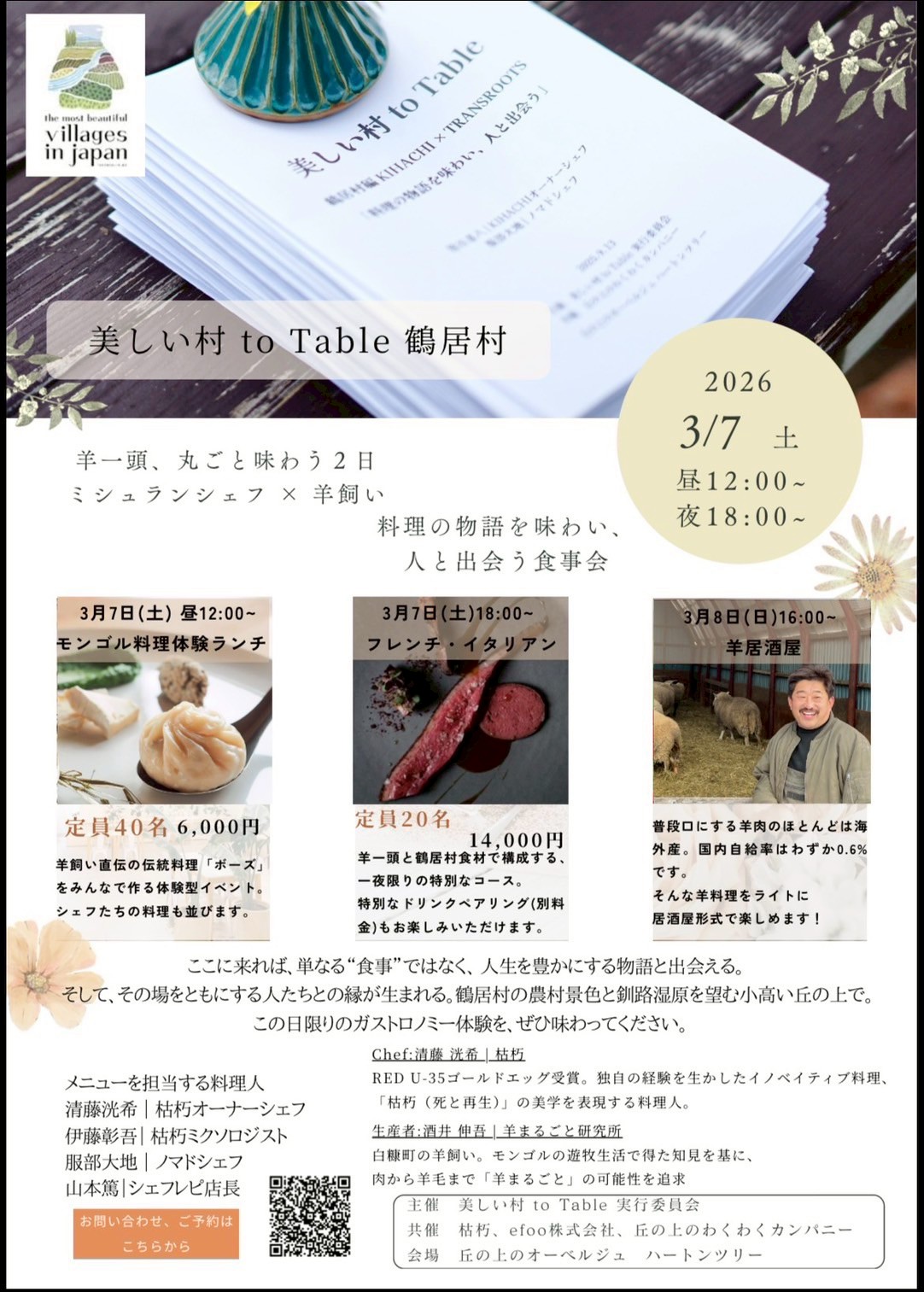 美しい村 to Table 鶴居村 – 鶴居村 羊の価値観が変わる、2日間。