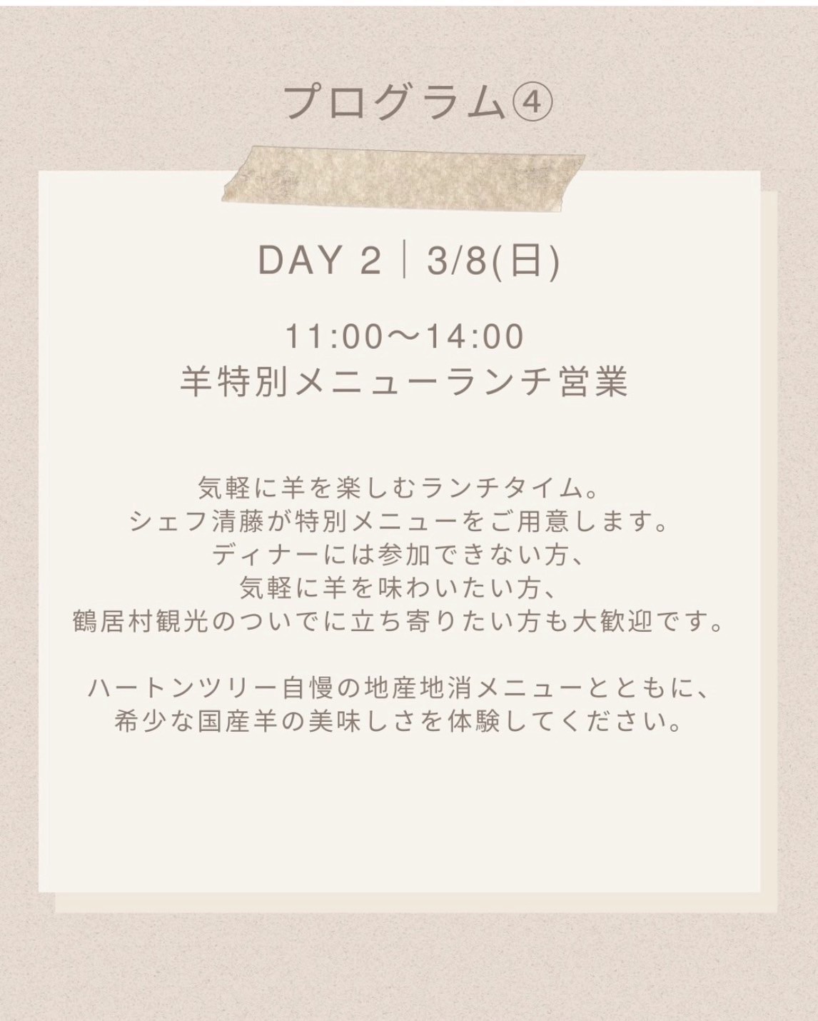 ふらっと立ち寄れる、特別羊ランチ(予約不要)