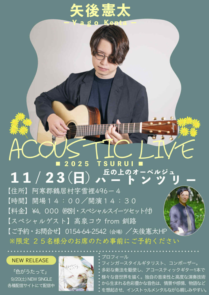 【ご予約・お問合せ】0154-64-2542(会場)/矢後憲太HP